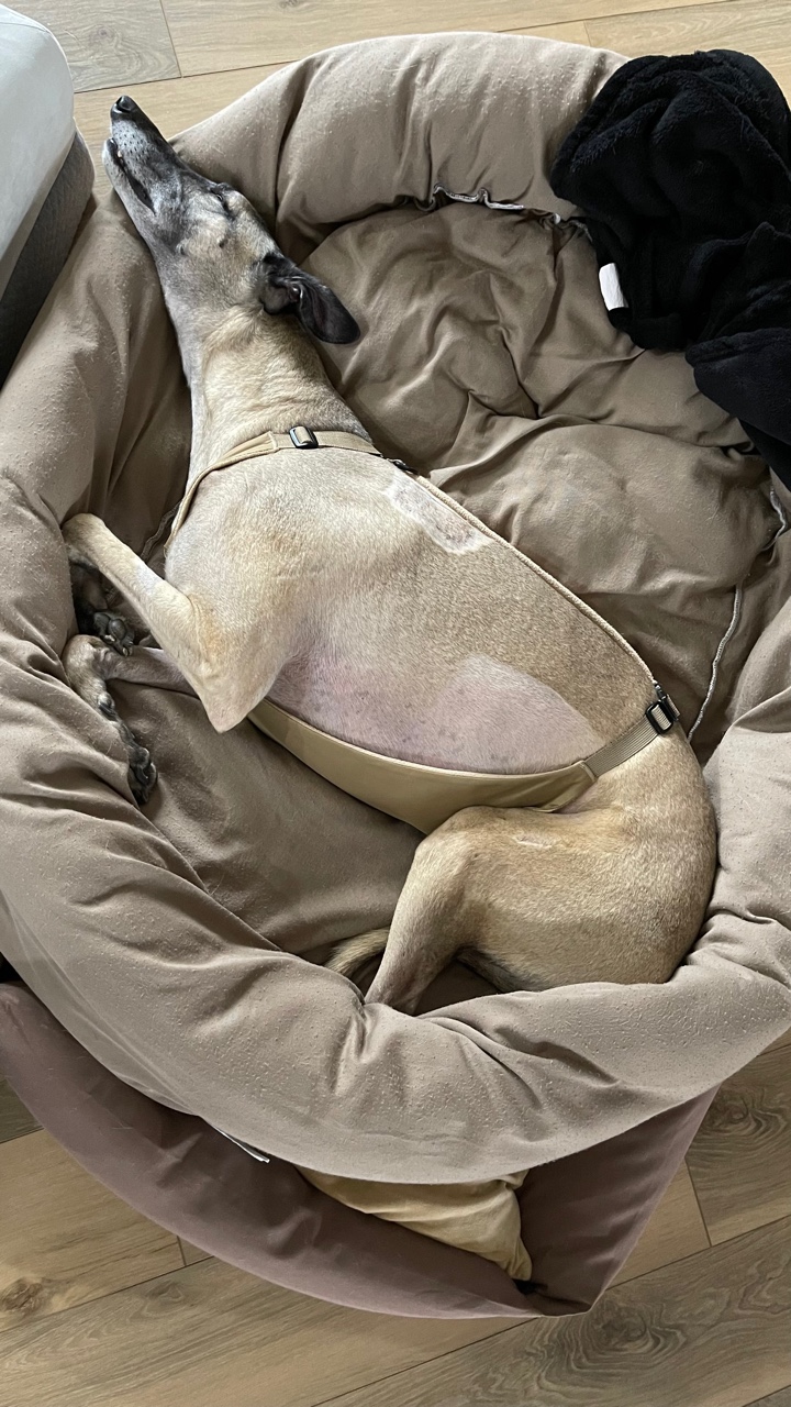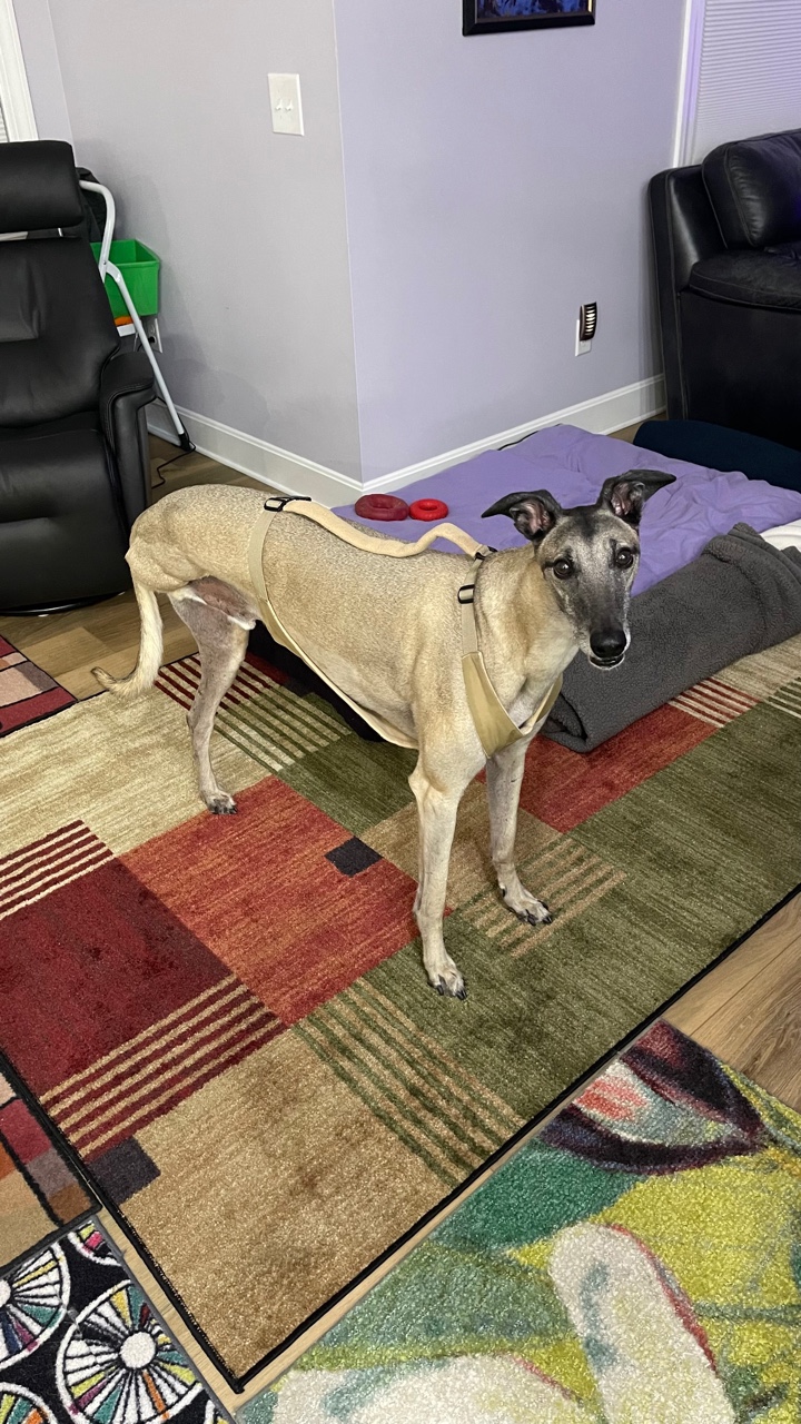 “We are happy with our decision and all the help Dr. Moore and all others engaged have provided to get Reno to his new normal. We hope Reno gets as much time as possible out of this decision (which likely would have been a couple of months with no action). We are now 6 months past the diagnosis, and it seems like forever ago. We are hopeful that Reno’s participation in the Greyhound Health Initiative study… can help others have good outcomes and much more time with their greys or other dogs with similar diagnosis.” – Ken & Caroline Abner